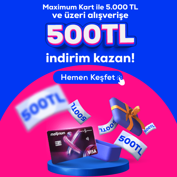 Maximum Kart'ınla Pazarama'dan yapacağın 5.000 TL ve üzeri ilk alışverişe 500 TL indirim!