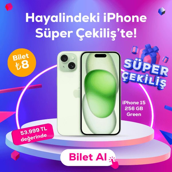 8 TL'lik biletle iPhone 15 256 GB kazanma şansı Pazarama'da 👉