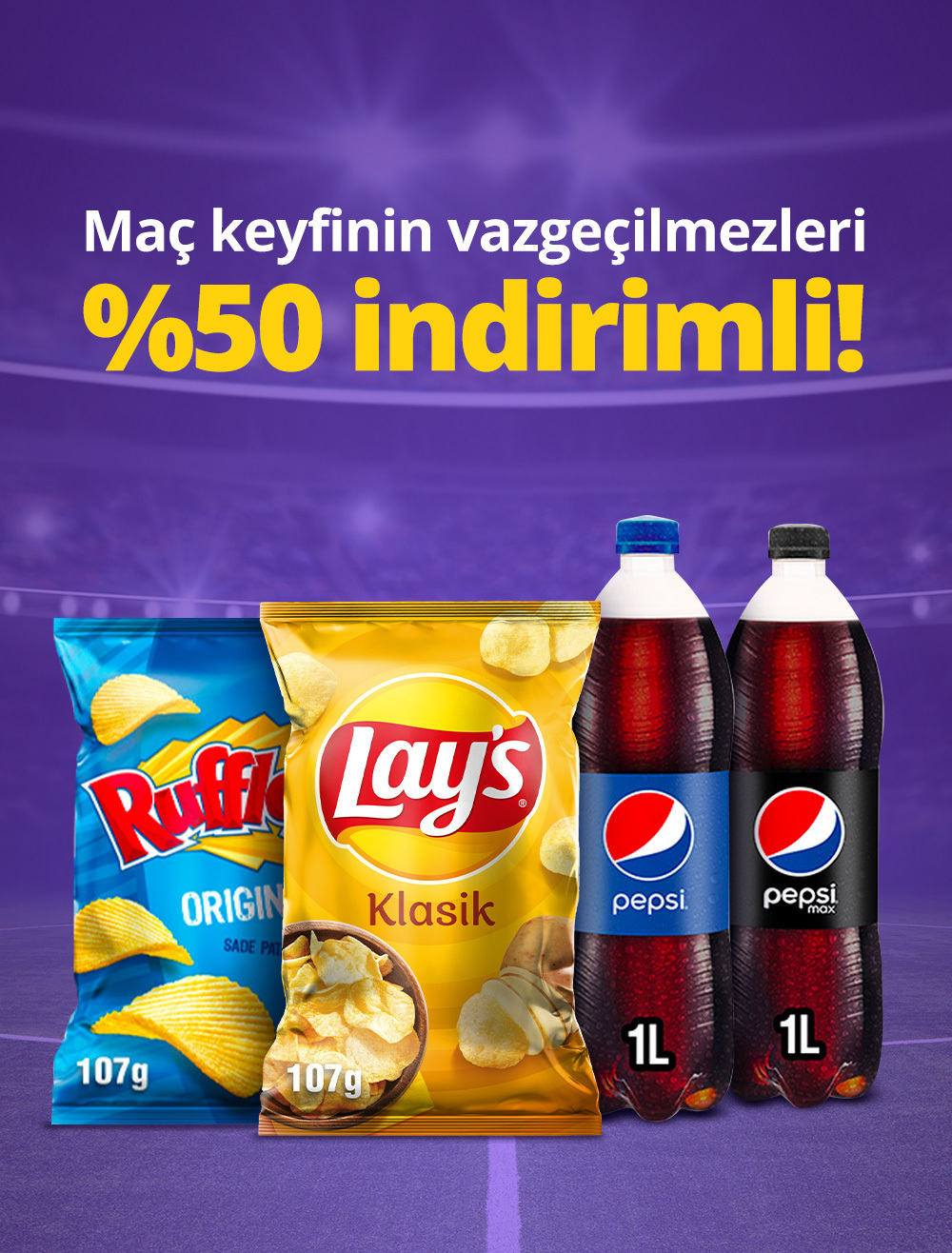 Seçili cips ve içecek çeşitleri bugüne özel %50 indirimde! 👀