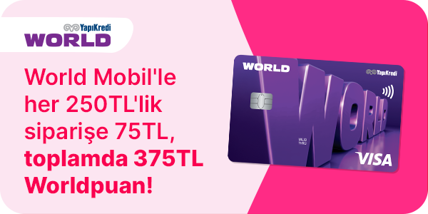 | Yapı Kredililere özel fırsat! | Yapı Kredi World Mobil'e özel, Yemeksepeti'nden vereceğin 250 TL ve üzeri siparişlerde tek seferde 75 TL, toplamda 375 TL kazanma fırsatı seni bekliyor!