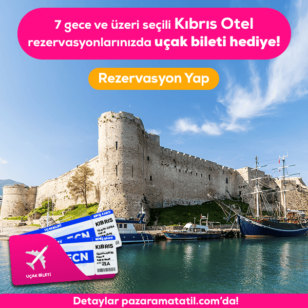 7 gece ve üzeri seçili Kıbrıs otel rezervasyonlarınızda uçak bileti hediye!