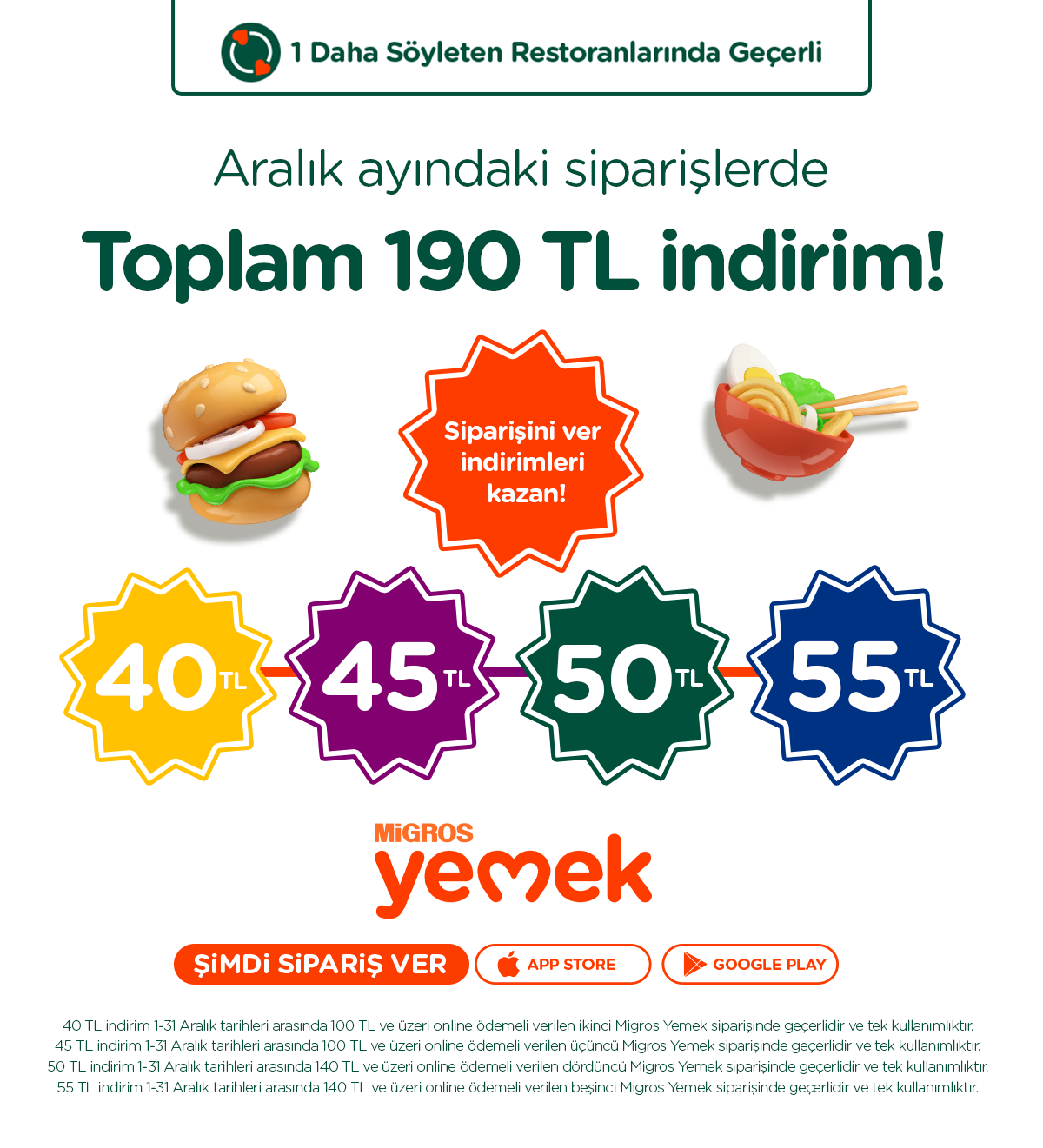 Bu mesaj size Migros Yemek tarafından iletilmiştir. Migros Yemek'ten promosyon ve duyuru mesajı içeren e-posta almak istemiyorsanız, "İletişim Tercihleri" sayfasındaki "Dijital Platform Gıda Hizmetleri A.Ş.'den kampanya ve bilgilendirme amaçlı E-Posta almak istiyorum." kısmından yanındaki işareti kaldırın. Bilgilerinizi hemen güncellemek için tıklayın.