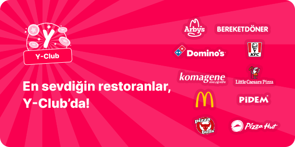 | En sevdiğin restoranlar Y-Club'da seni bekliyor! | Y-Club ile her siparişinde kazan, kazandığın YemekPuanlarını Ödül Dükkanı'ndan kupona dönüştür. Arby's, Domino's ve McDonald's gibi seçili birçok restorandan indirimli sipariş vermenin tadını çıkar! Unutma, Y-Club'da 1 YemekPuan = 1 TL. | | SİPARİŞ VER! | |
