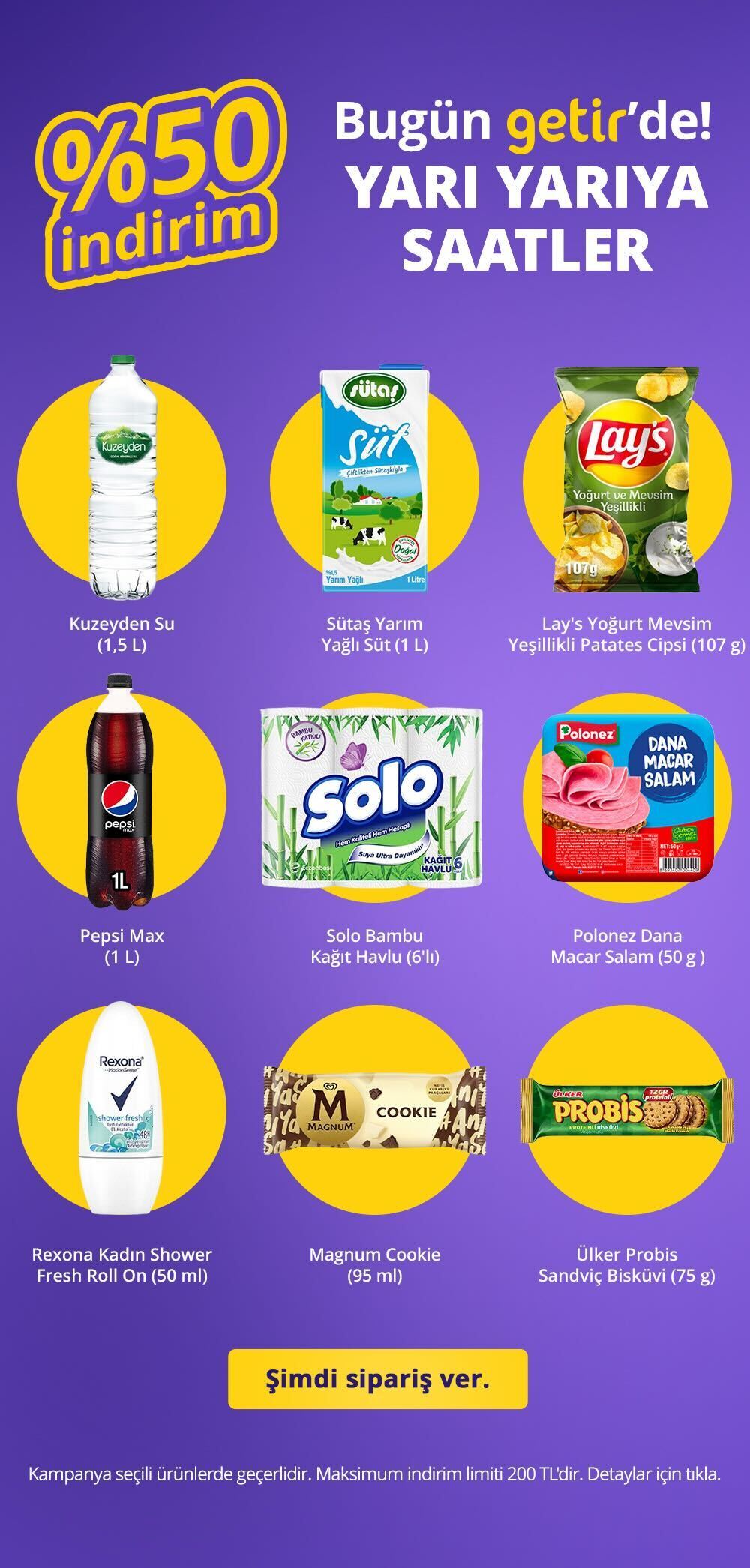 Getir’de BUGÜN saatler %50 indirimi gösteriyor! ⏰ on Şubat 09, 2024 with Hiç yorum yok Yarı Yarıya Saatler'de yüzlerce üründe %50 indirim fırsatını kaçırmayın! Copyright © 2024 GETİR PERAKENDE ve LOJİSTİK A.Ş., Her hakkı saklıdır.Mersis No: 0394048265800010Üyelikten Ayrıl Share: Bunu E-postayla GönderBlogThis!X'te paylaşFacebook'ta Paylaş