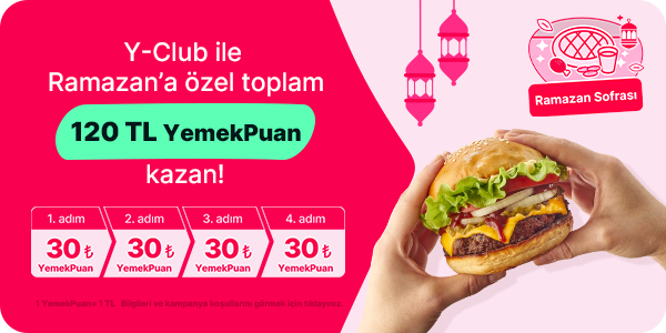 | Ramazan Sofrası Görevi için son hafta! | Toplam 120 TL YemekPuan ödüllü Ramazan Sofrası görevi 1 hafta sonra sona eriyor! Hemen katıl göreve katıl, saat 18:00 ile 06:00 saatleri arasında vereceğin 4 iftar veya sahur siparişinle her adımda 30, toplam 120 TL YemekPuan kazan! Yeni Ramazan sürprizleri için Y-Club'ı takipte kalmayı unutma! | | HEMEN KATIL! | |