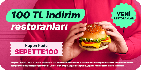 | SEPETTE100'e yeni restoranlar eklendi! | Sevdiğin lezzetlere 100 TL indirimli kavuşmak için sepetini doldur, defalarca kullanabileceğin SEPETTE100 kuponu ile indirimli sipariş ver!