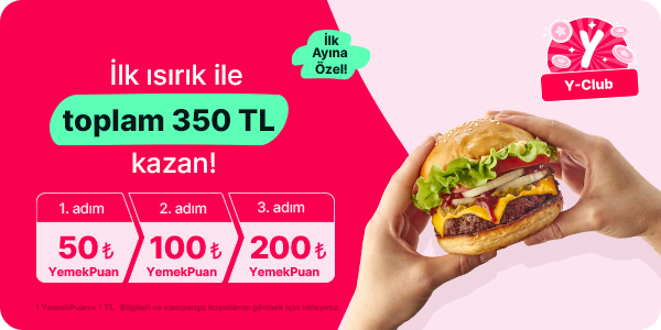 | Haydi, ilk görevine özel ödülü kaçırma! | Y-Club'la İlk Isırık görevine katıl; Yemeksepeti'nden sipariş vereceğin ilk ayına özel, ilk siparişinde 50 TL, ikinci siparişinde 100 TL, üçüncü siparişinde tam 200 TL YemekPuan kazan! Unutma, Y-Club'da 1 YemekPuan = 1 TL. Göreve katıl, adımları tamamla, YemekPuanlarını Ödül Dükkanı'nda kupona dönüştür, seçili işletmelerde doyasıya harca! | | HEMEN KATIL | |