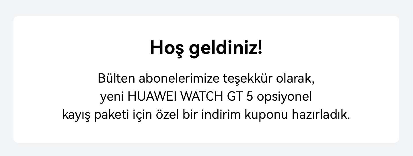 | Huawei Telekomünikasyon Dış Tic. Ltd. Şti. Mersis No: 0464033041500011 | | | | | | Bu maili Huawei mağazasından satın alım yaptığınız için almış bulunmaktasınız. Eğer herhangi bir satın alım yapmadıysanız, https://consumer.huawei.com/tr/support/ adresinden destek alabilirsiniz. | | | | | | Haber bültenini almak istemiyorsanız veritabanından otomatik olarak kaldırılmak için burayı tıklayın. | | | | | | | |